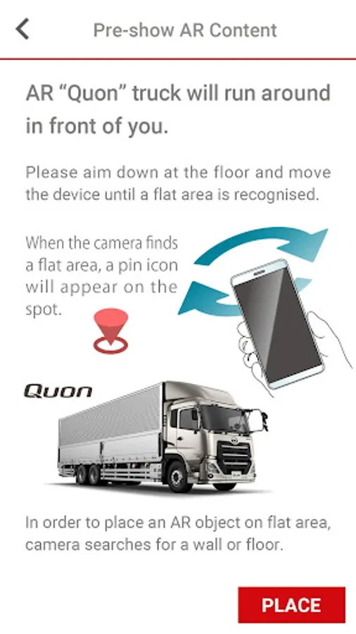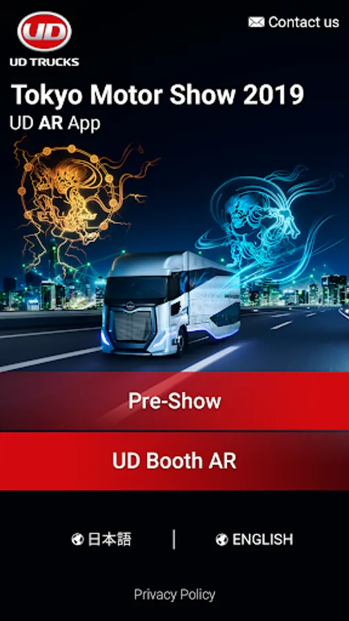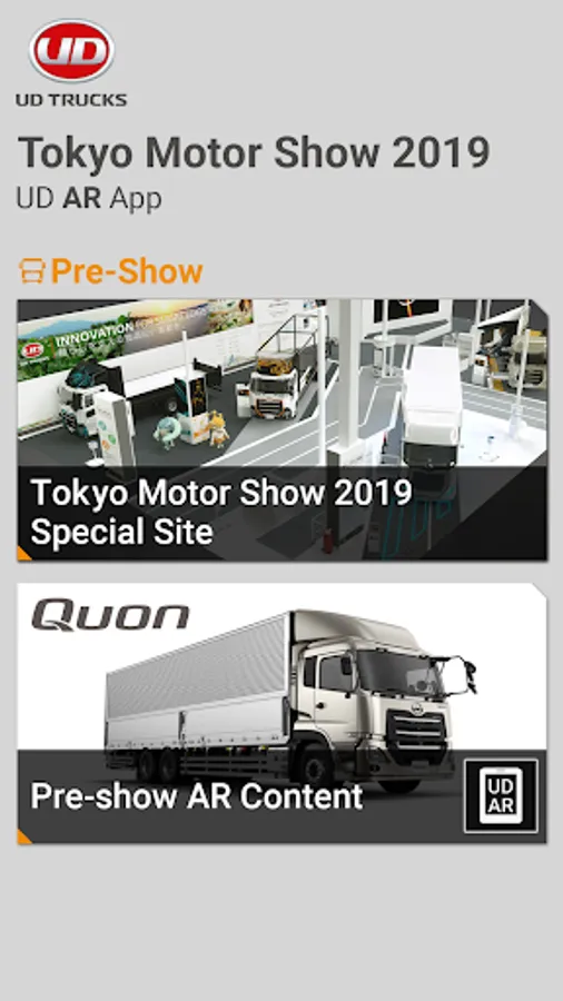 This is an AR app to discover engaging experiences at UD Trucks booth in the Tokyo Motor Show 2019. There will also be content available before the event and even outside the venue.