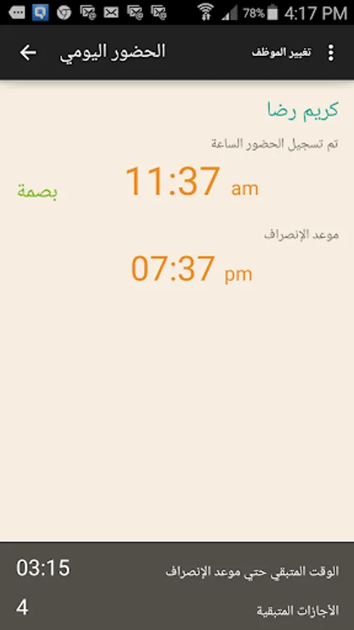 Almoawen EM application is a part of Almoawen Time Attendance System and this app is serving employees and team leaders to help them following up their logs and statistics of time attendance, Almoawen EM app gives employees facility to attend using face recognition based on their GPS location