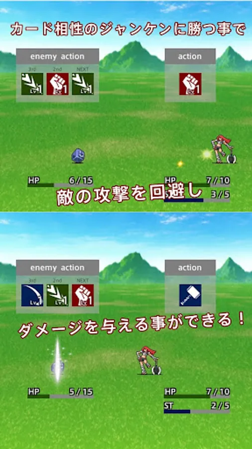 Since the means to recover the HP is limited, reduce the damage that how to receive, or defeat the enemy with limited resources will be the point.