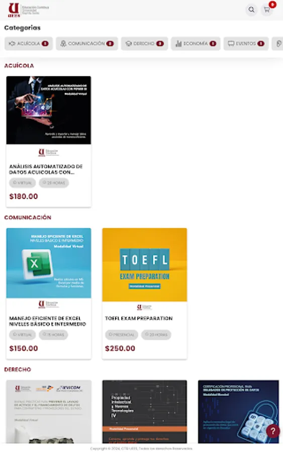 UEESCART allows you to purchase continuing education courses and events easily, without needing to log in. Add the courses or events to the cart, adjust the number of participants, complete the required information and make your payment securely. After successful purchase, you and registered participants will receive email confirmations. In case of problems with your purchase or if you do not receive confirmation emails, you can contact support through our contact channels for help.