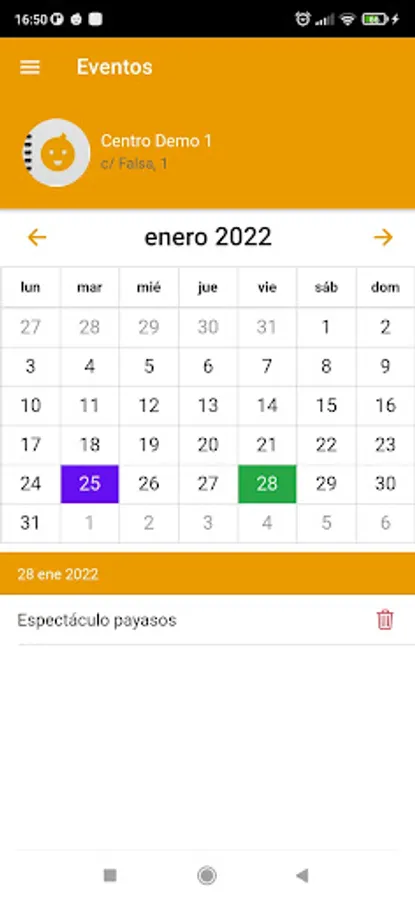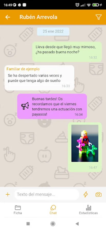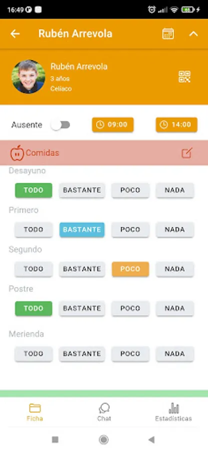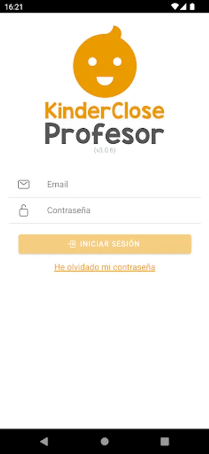 This is the KinderClose app for Teacher (white background). The app for Familiar (orange background) is also available and can be downloaded for free.