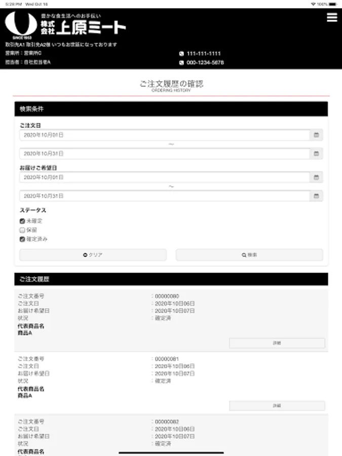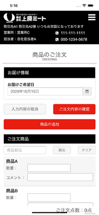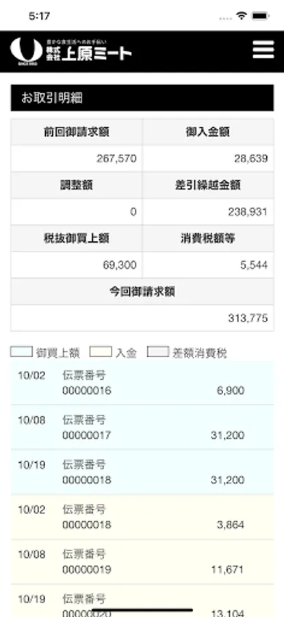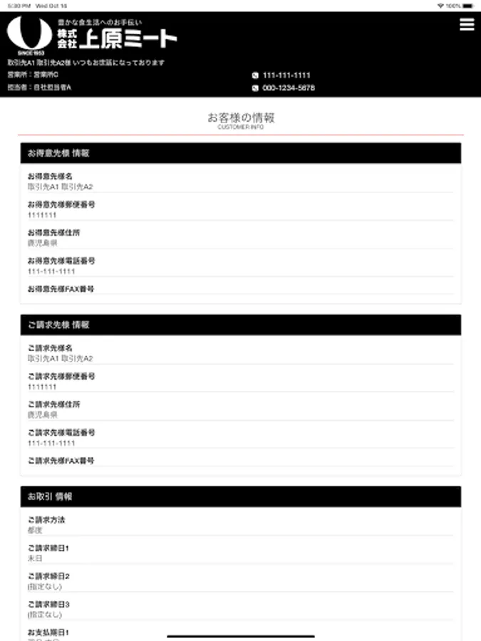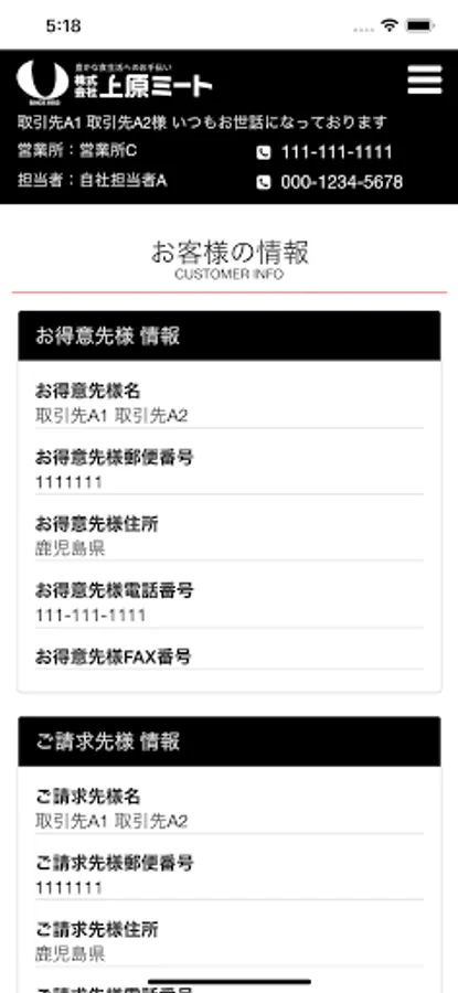 ・ This app is for customers of "Uehara Meat Co., Ltd." to order products and check other transaction information.