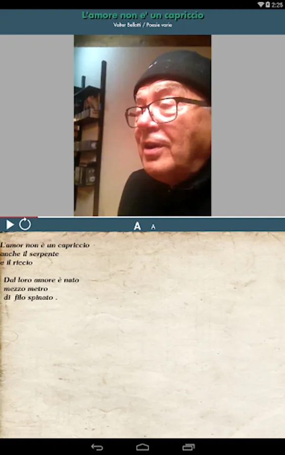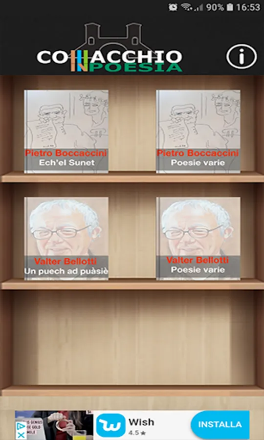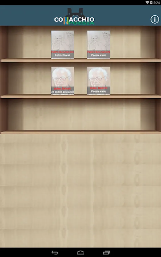 App where you can read both in Italian and in Comacchio dialect, where you can see various videos recited by Valter Bellotti of poems of his creation and by Pietro Boccaccini, a simple application where you can learn about the world of Comacchio poems.