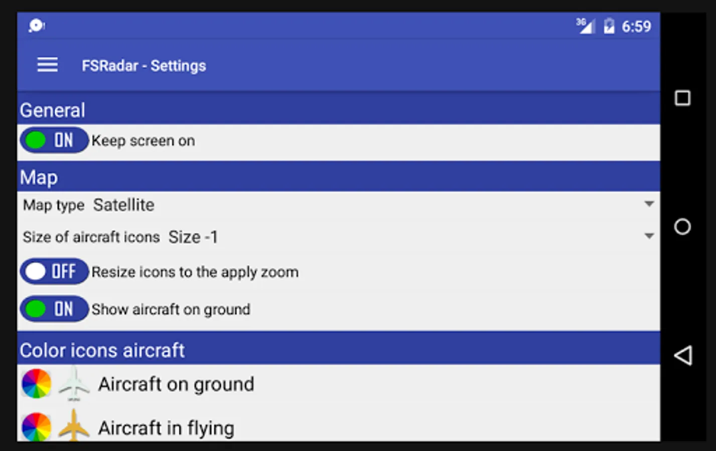 - Change the size of aircraft icons.