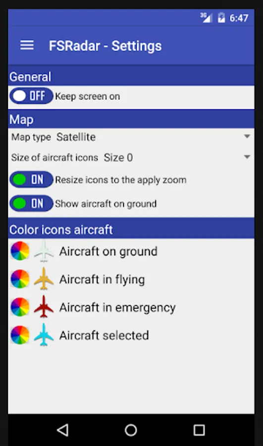 - Change the color of aircraft icons.