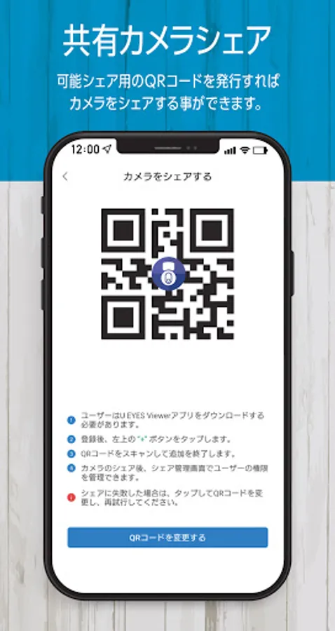 ・Since you can share only live viewing with a QR code, you can share information with high security.