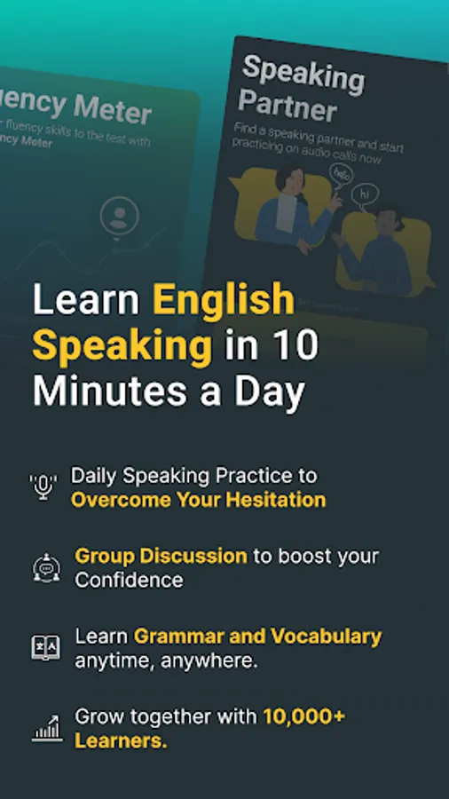 In Speaking Partner, FluentLife English speaking app users can connect with other users and practice their conversation skills over audio calls any time throughout the day.