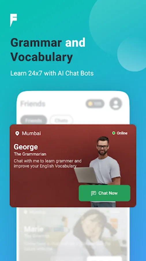 What can be more interesting than upgrading your grammar skill while you chat? You can chat with 10+ AI personalities and learn contextual grammar and vocabulary anytime, anywhere. Join the best app to learn English speaking fluently with an AI speech coach and a bunch of AI friends! Our AI will select the best bite-sized lessons for you!