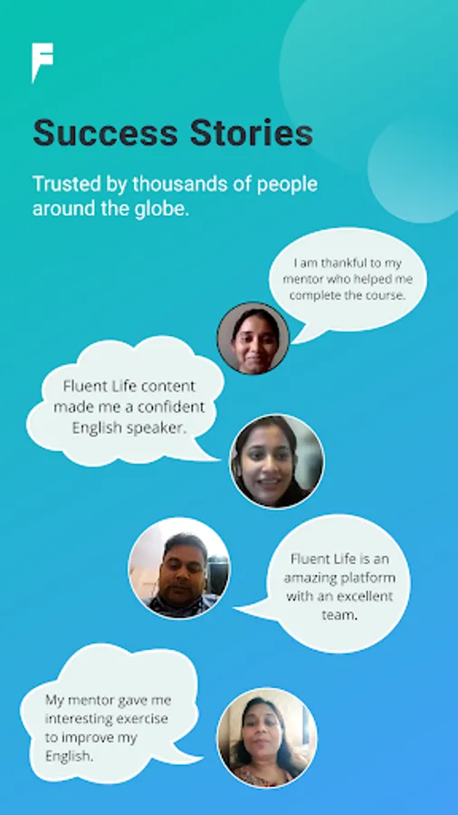 The spoken English practice app is here for your learning! With the features of the English learning app in India, you can practice enormously to upgrade your skills. In this best online English speaking app, you also get a trainer bot that helps you ace that tough pronunciation you are always stuck at. Let's speak clearly and confidently with the Fluent Life English Learning App!