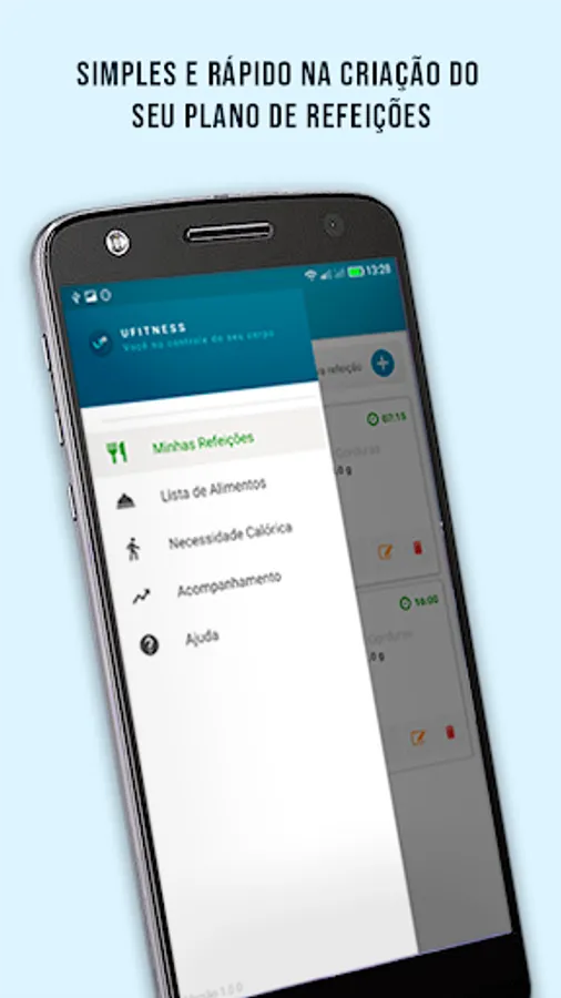 Ufitness proposes to offer a diary for your meal plan with metrics such as the amount of the main macronutrients (carbohydrates, proteins and fats) and the calorie balance of each meal created.