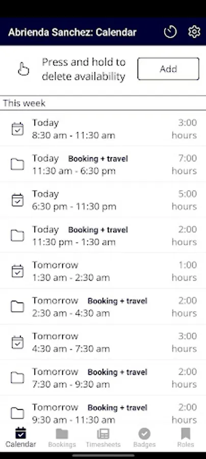 On the app, tell us the hours you are available for work; today, tomorrow, or weeks ahead. Participating clients can then book your hours within any rules you set about minimum period of notice, maximum travel distance, from home or minimum shift length.