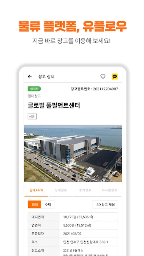 UFLOW connects business and warehouse and creates a better corporate logistics system. 1Pallet, can be used per week, and stored products are covered by safety insurance service.