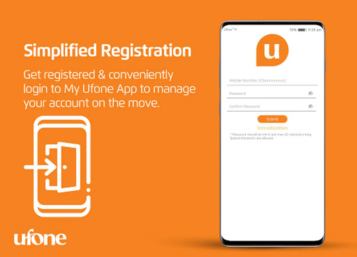 • Sign up - Easily sign up for an account by just providing your Ufone 4G number