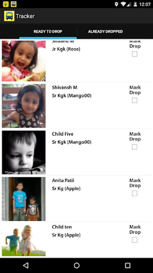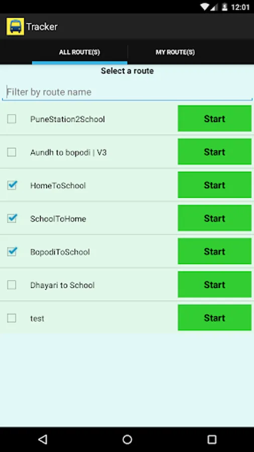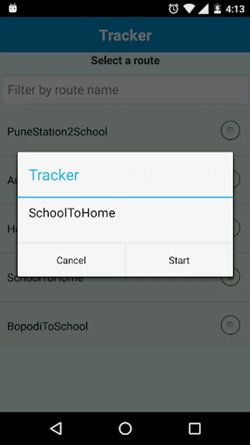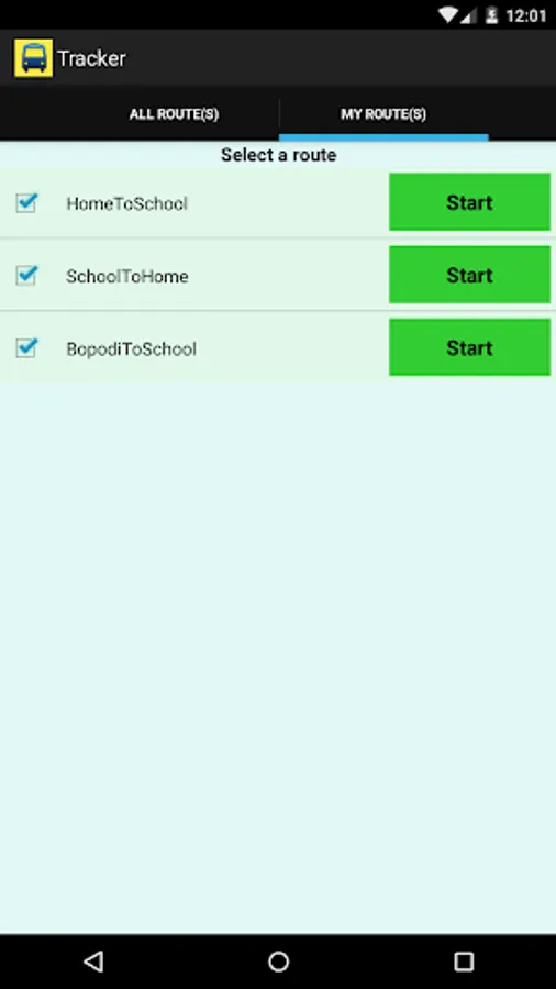 Driver has to select a route and hit the start button. Once started the bus will start transmitting real time location of the bus to all the parents of children mapped to that route.