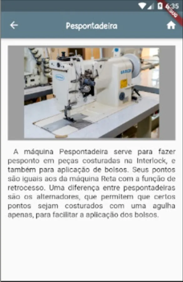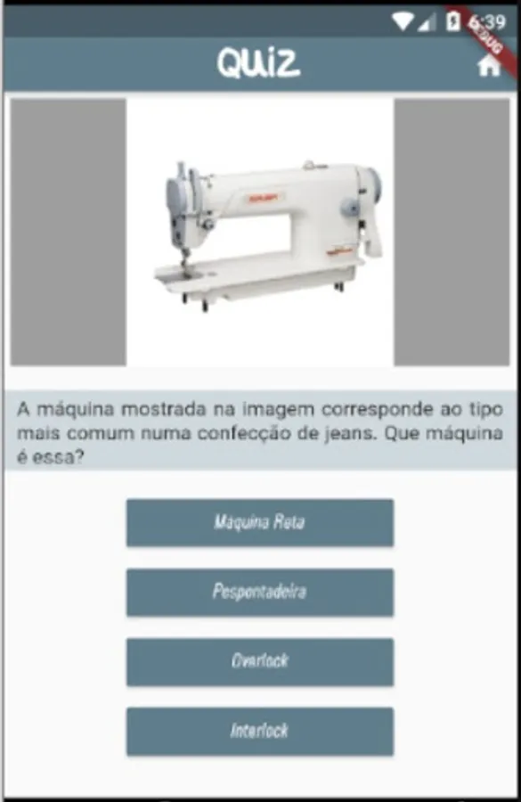 The application's intention is to bring some basic information about the theme, through short texts and images, and allow the user to interact through a Quiz composed of 10 questions. In this way, it seeks to contribute to the dissemination of knowledge related to the textile industry.