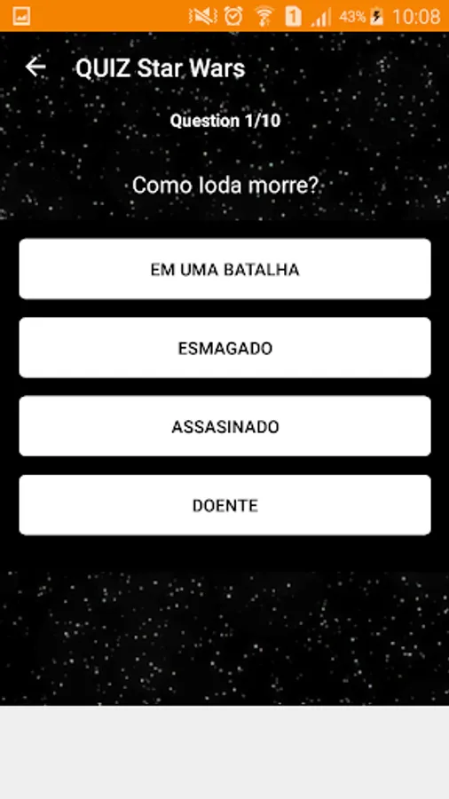 Android application developed in the Discipline of DCC / UFRR using external SQlite to the Bank of questions for the QUIZ on Star Wars