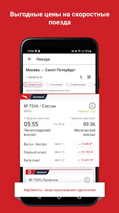 Convenient purchase of railway tickets online for trains in Russia: Sapsan, Lastochka, Strizh.