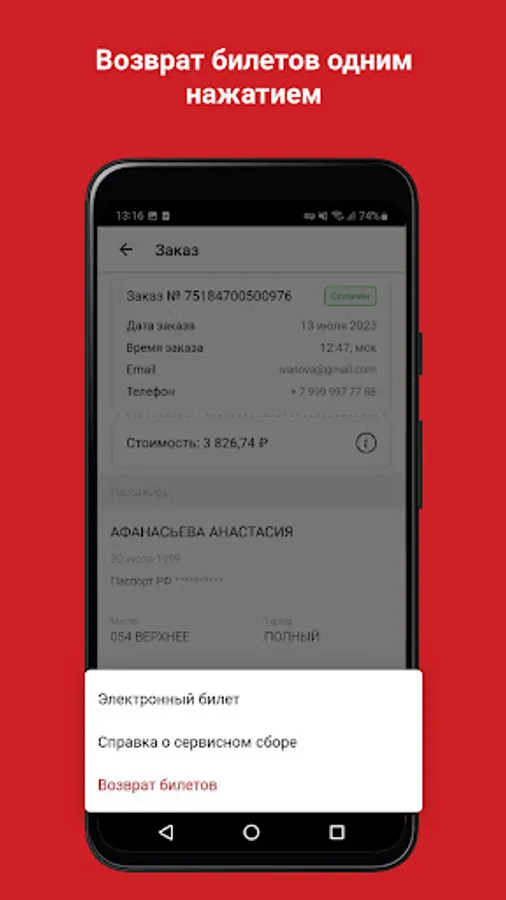 → 100% of the cost when returning a ticket with the “Guaranteed Return” service. If you need to buy a ticket, but you are not sure that the trip will take place, then add the “Guaranteed Return” service to your order and this will save you from the risk of losing money when exchanging or returning a ticket.