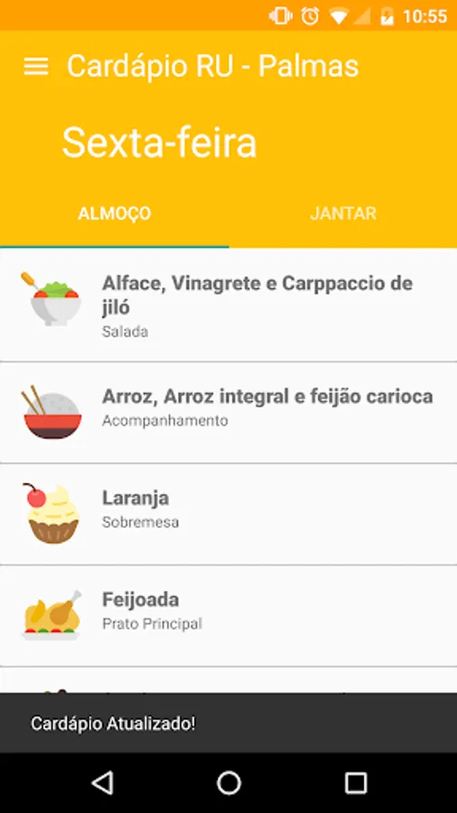 Application with the weekly University Restaurant Menu of the Federal University of Tocantins.