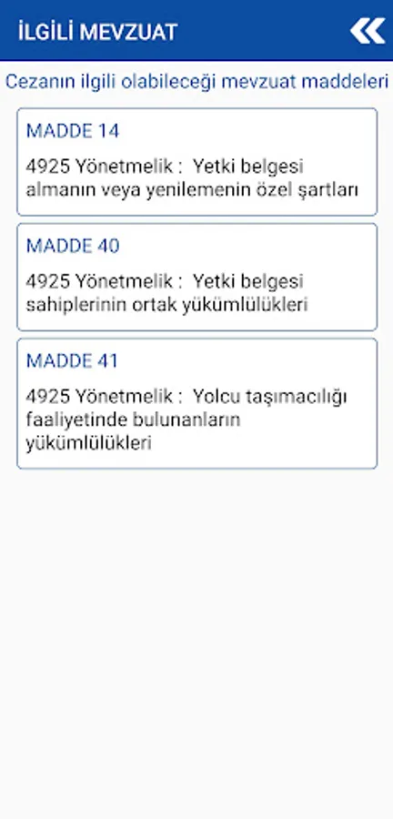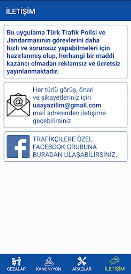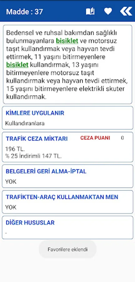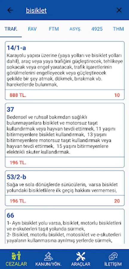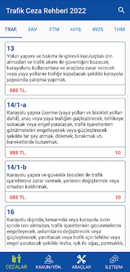 This application has been made so that the traffic policemen, gendarmes and honorary traffic inspectors working in the traffic can more easily access the contents of the penalty clauses.