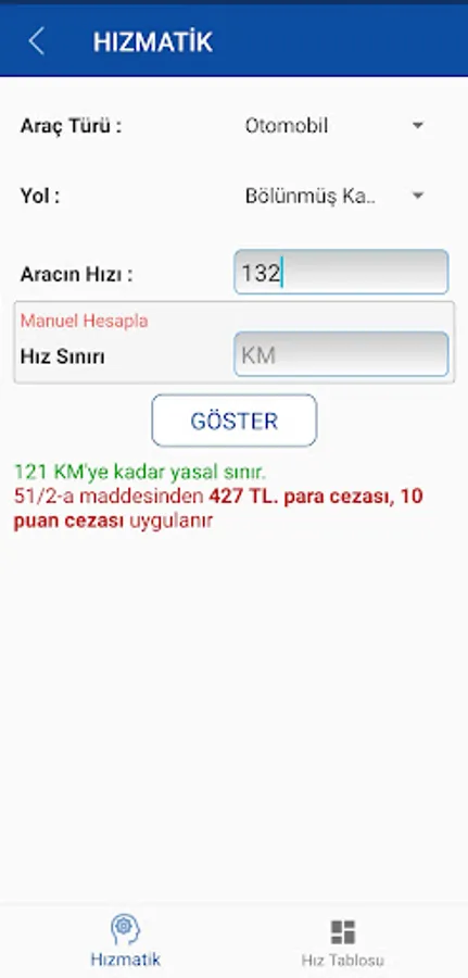 - Calculating which speed and penalty points are given to which speed with the Speedmatik application.