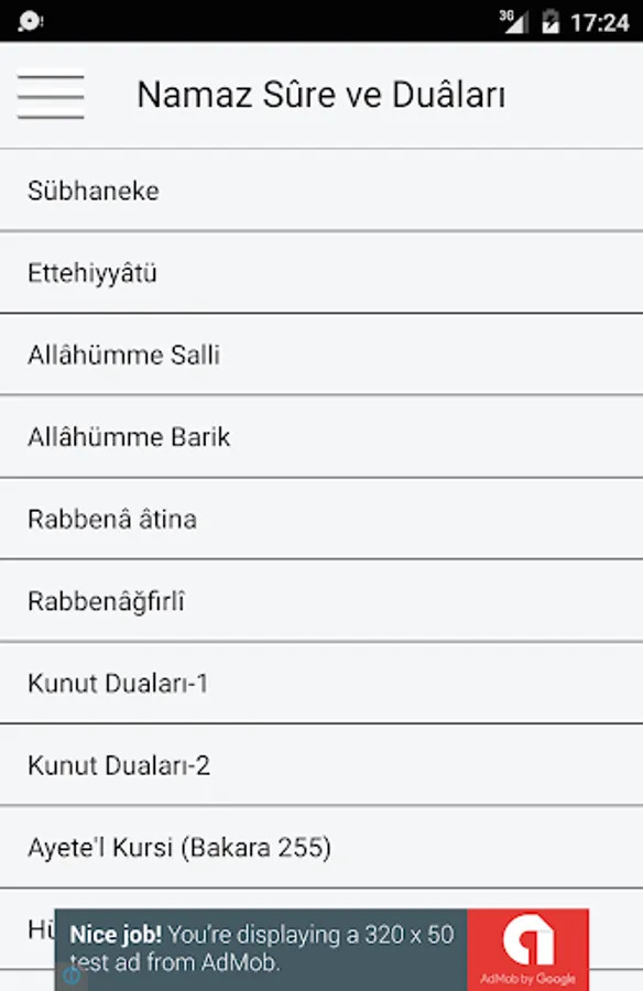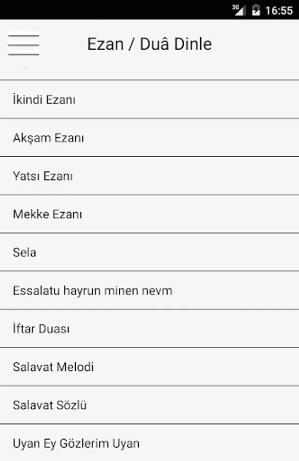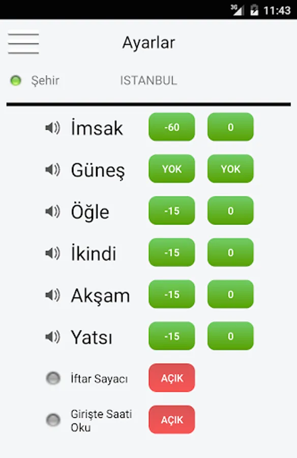 - Voice reminder of the remaining time of the prayer (in Turkish),