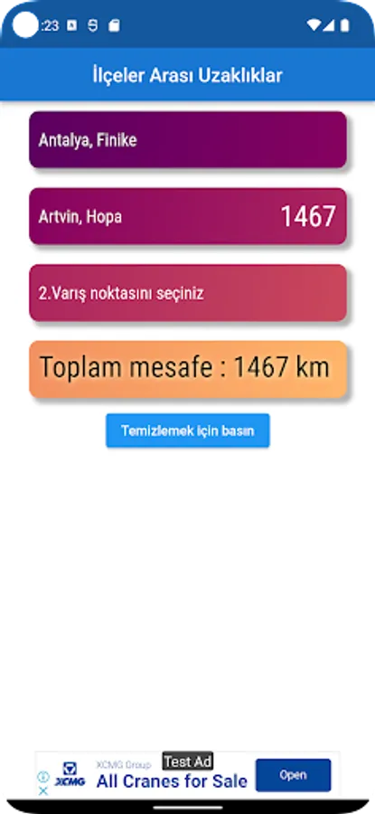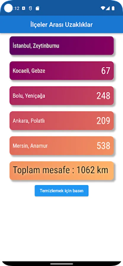 Application; for each point, it calculates the distance from the previous point and the total distance of the route.