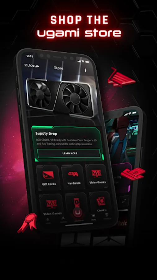 All of your purchases within the Ugami app also gives you Ugipoints! You can use these to shop or get discounts on the curated Ugami Store, accessing merchandise from the top gaming brands, including Best Buy, Nvidia, Steam, Xbox, PlayStation, Nintendo, and many more.