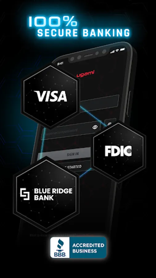 Ugami is a financial technology company and is not a bank. Banking services are provided by Blue Ridge Bank, N.A, Member FDIC. Deposits are FDIC-insured through Blue Ridge Bank, N.A., Member FDIC. The Ugami Visa Debit Card is issued by Blue Ridge Bank, N.A., Member FDIC, pursuant to a license from Visa USA Inc. Your funds are FDIC insured up to $250,000 through Blue Ridge Bank, N.A.; Member FDIC.