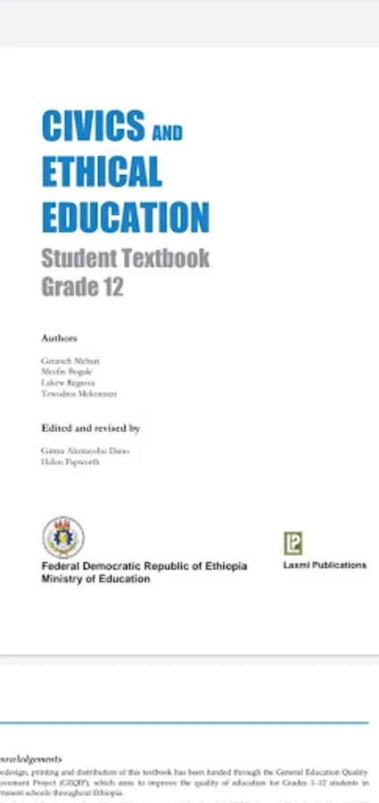 This is Civic and Ethical Education grade 12 textbook for ethiopian students, technology is improving and students require to get Civic and Ethical Education textbook in app from google play store by searching the term Civic and Ethical Education grade 12 textbook for ethiopia then they will get the app of Civic and Ethical Education grade 12 textbook for ethiopia in google play store.