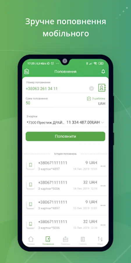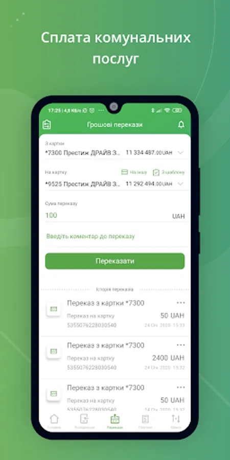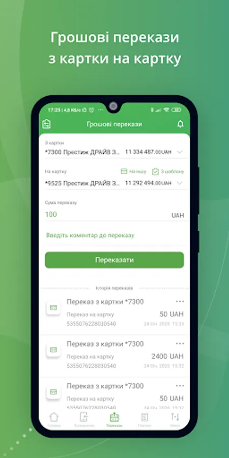 - to make money transfers from card to card within the bank and on cards of other banks.