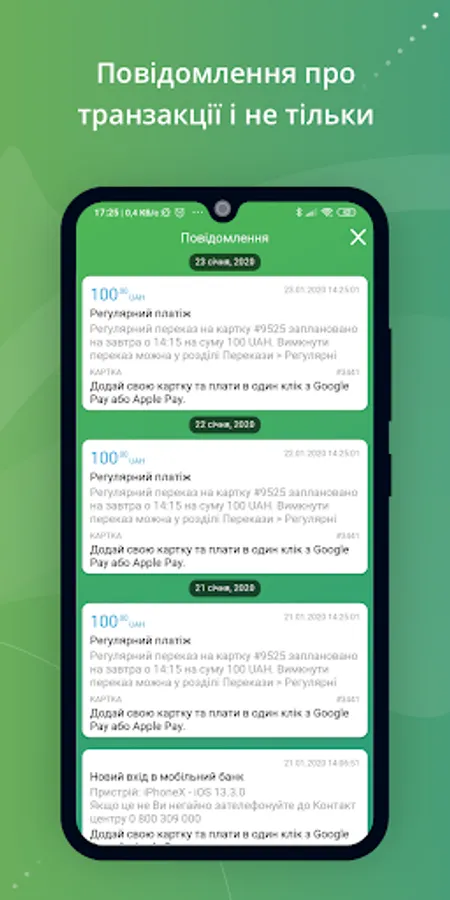 - to receive information on the last 10 transactions made with the use of a payment card;