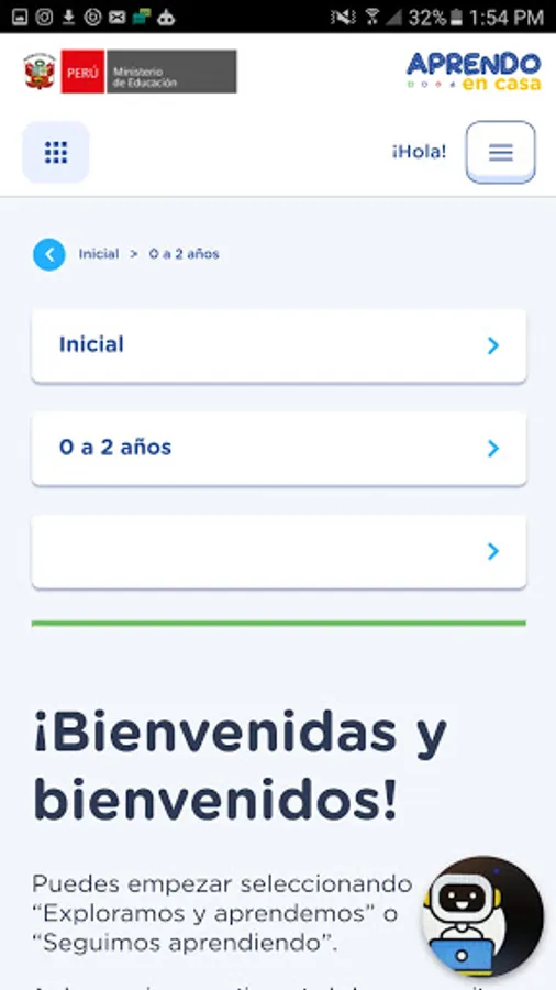 Application developed with the resources of the platform "I learn at home" - MINEDU issued daily. View the schedules of Regular Basic Education (EBR), Special Basic Education (EBE), Alternative Basic Education and has a direct channel to the whats app to answer your questions and / or queries.