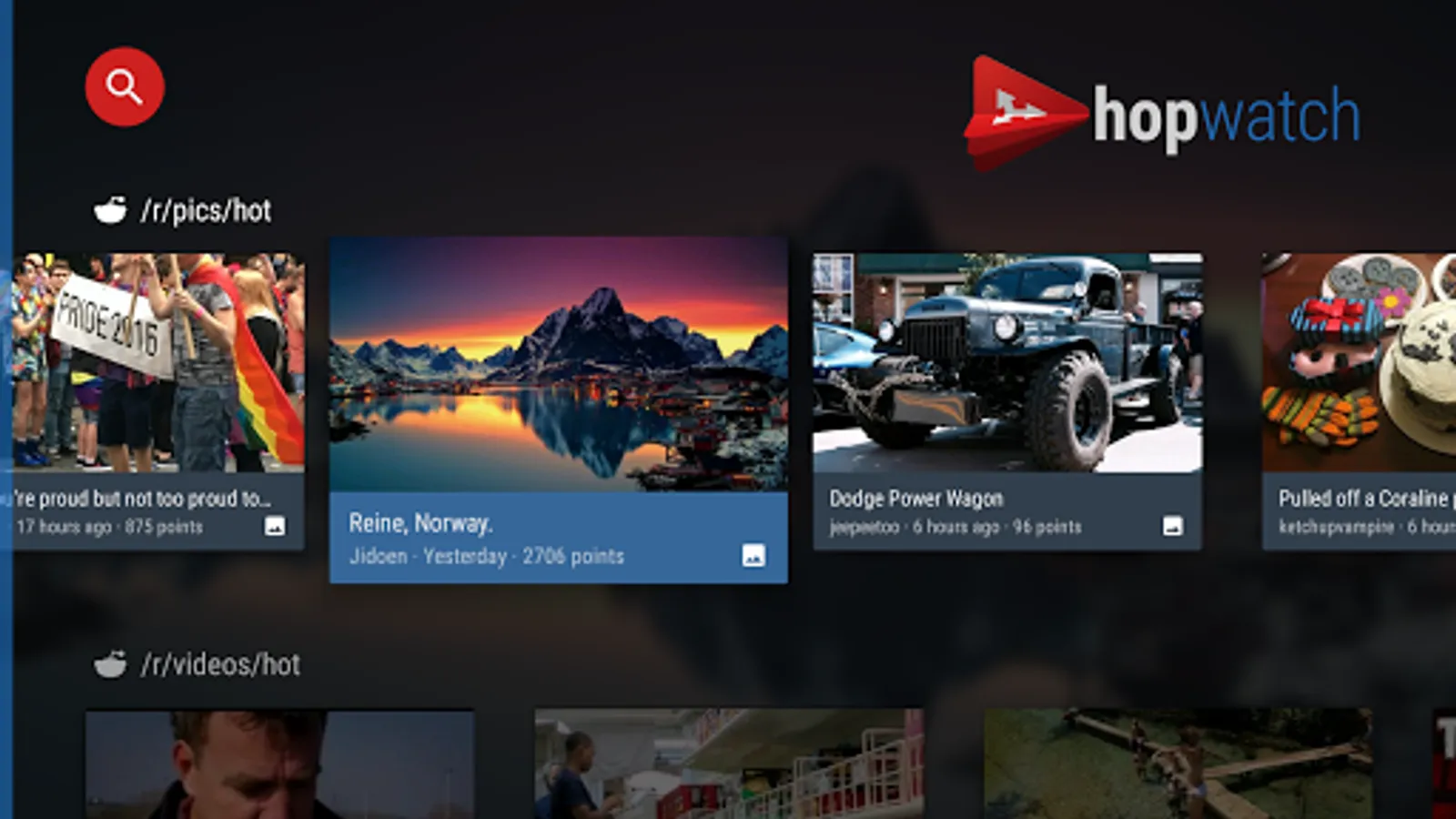 HopWatch's search function makes it easy to find Reddit videos on any topic. HopWatch also provides a home screen channel, always updated with the latest popular videos.