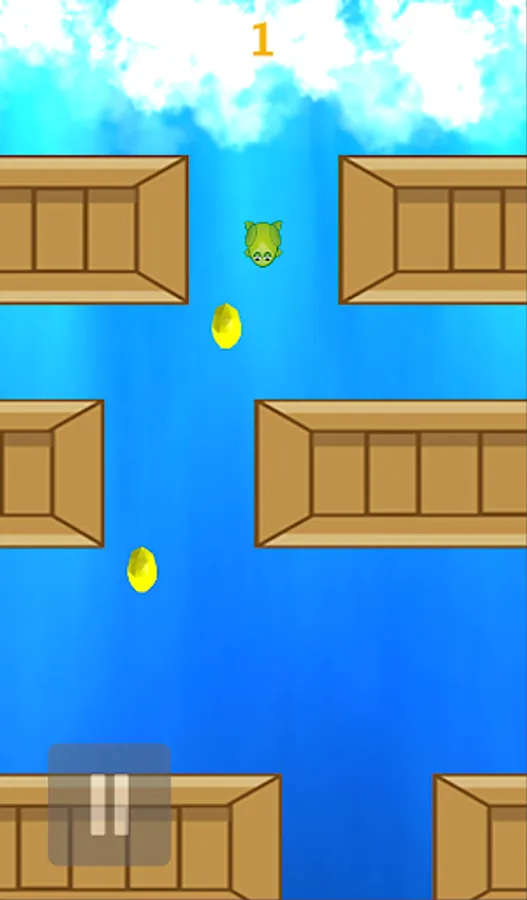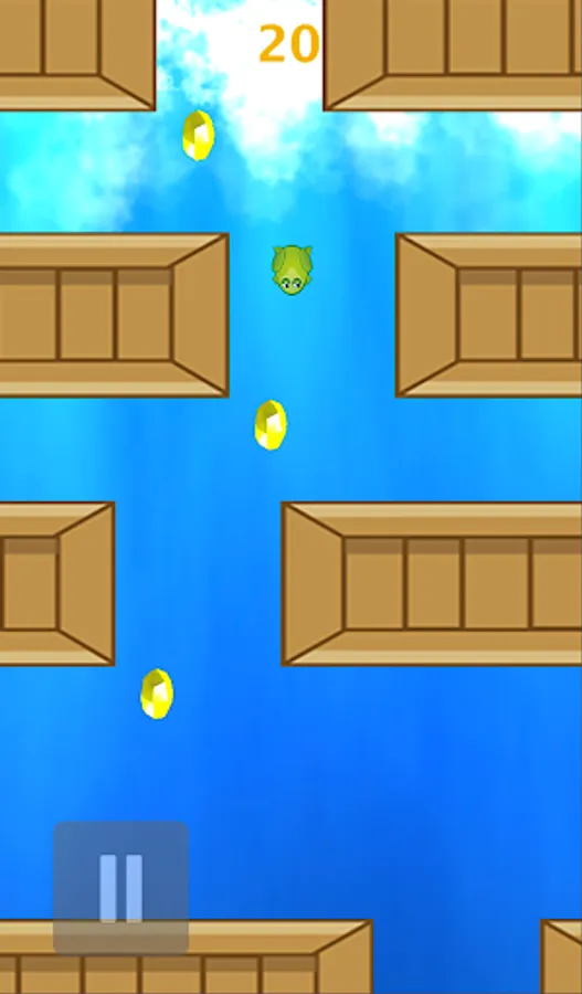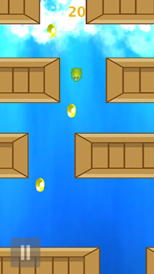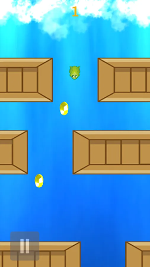 This hard game has a side-scrolling vertical format and the player controls a frog, attempting to swim between obstacles without coming into contact with them, taking diamonds to increase his score.