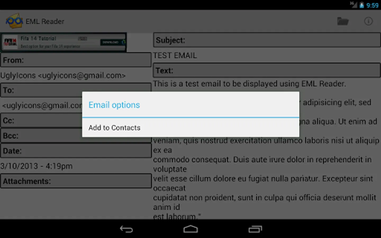 EML Reader is Copyright 2013 by UglyIcons (uglyicons@gmail.com).