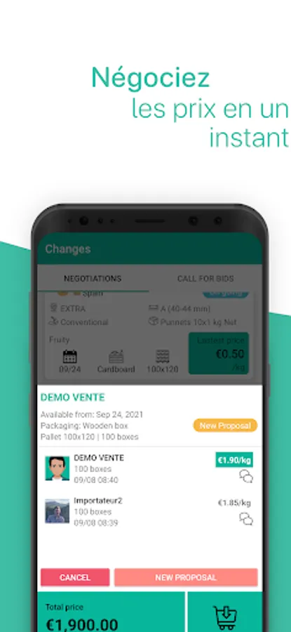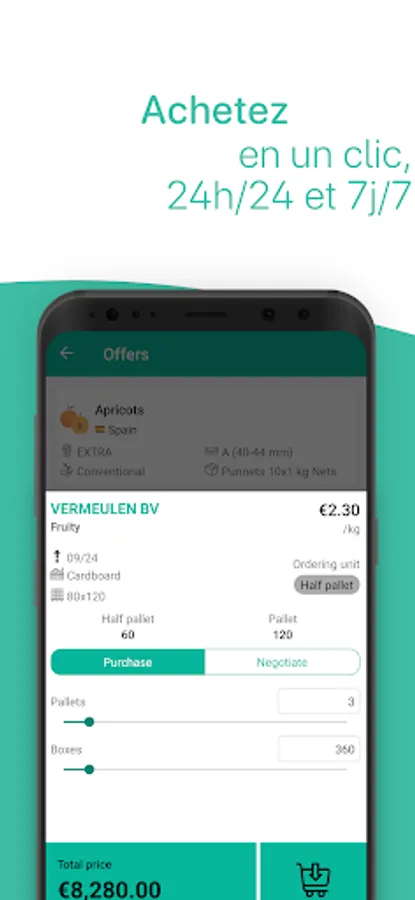 - Access in real time to all your suppliers' offers, classified by product and available 24 hours a day, 7 days a week