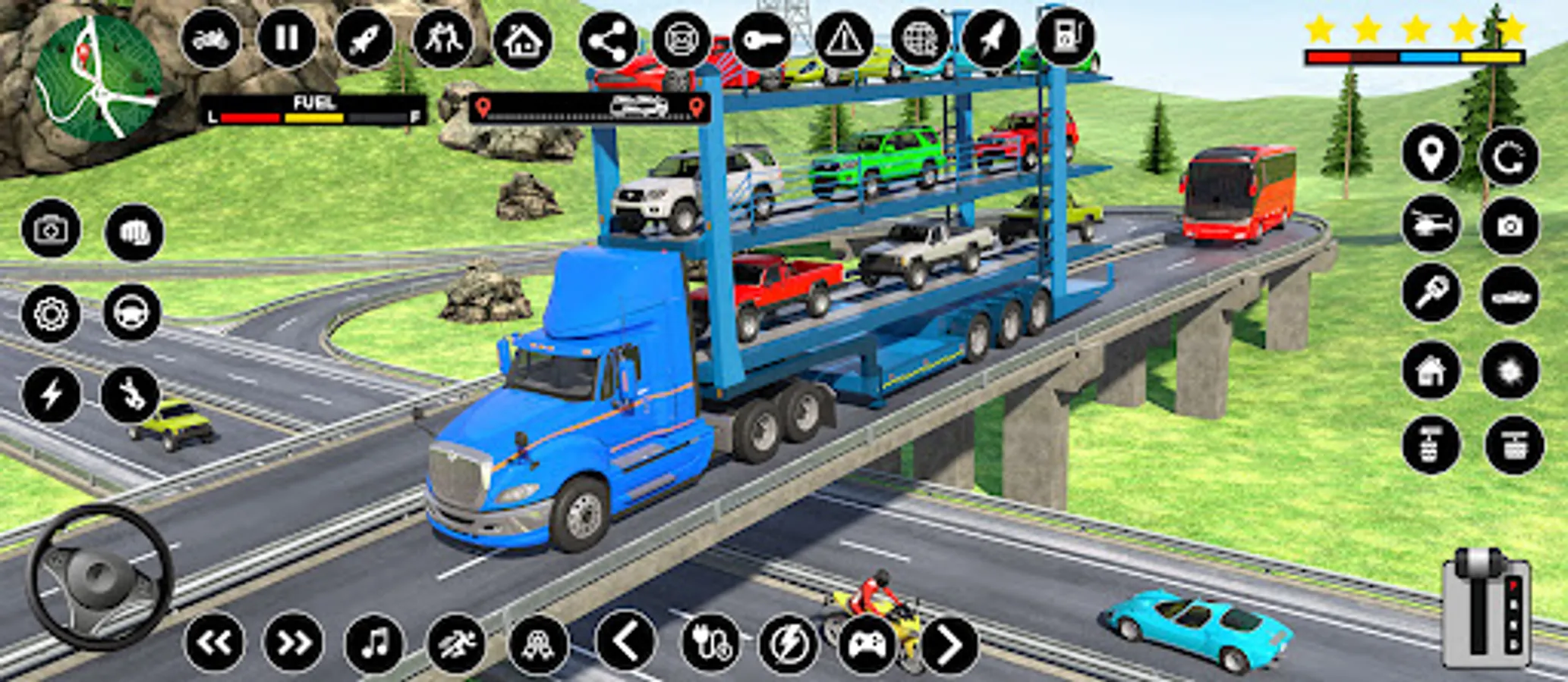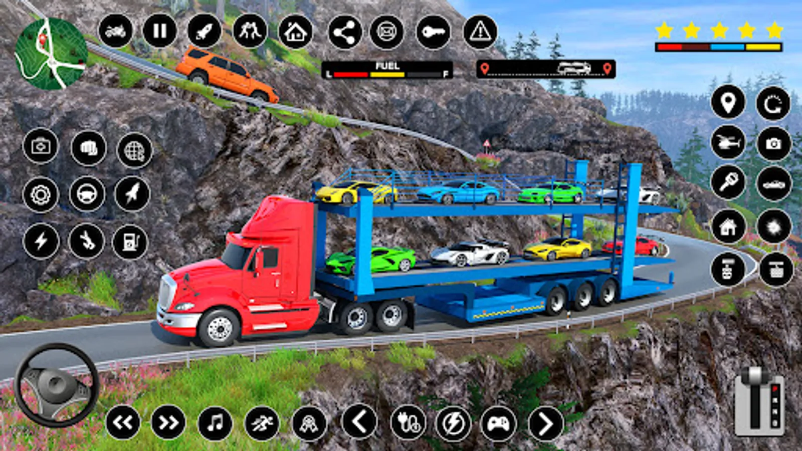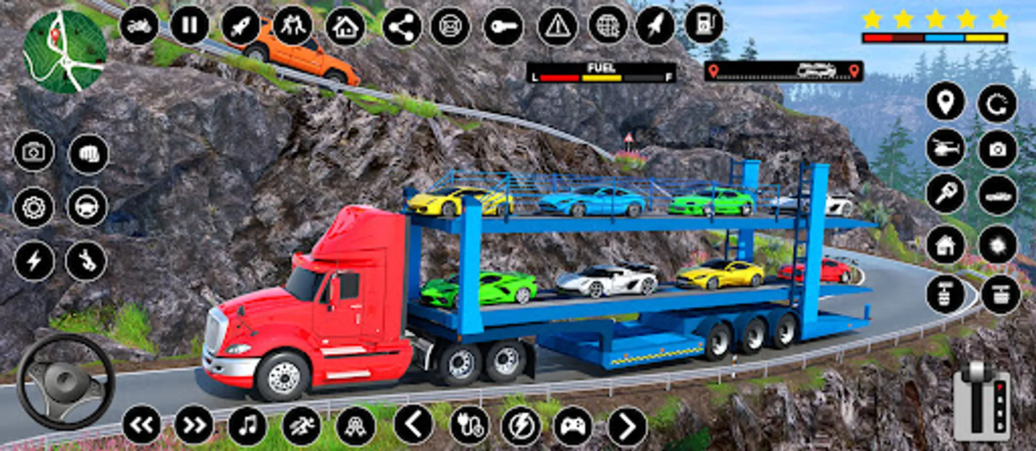 Transport vehicles on time in crazy car transport and cargo truck driving games. As an extreme car transporter truck wali game, start your Euro trucker car shifting with a crazy truck driving simulator big Europe truck transporter game. Park cargo trucks at a specified location in trailer games. While loading luxury cars unbalancing can cost your carrier of truck simulator driving games. The Euro truck simulator is loaded with luxury cars so the trailer drives safely through city traffic and offroad truck transporter tracks. After loading cars over the trailer truck, you will have to drive the car transporter trailer to the showrooms and unload the highway transportation vehicle in long truck games. There are different crazy car carrier weather conditions in the levels of the cargo truck games offline & Europe truck wala game in cargo trailer games.