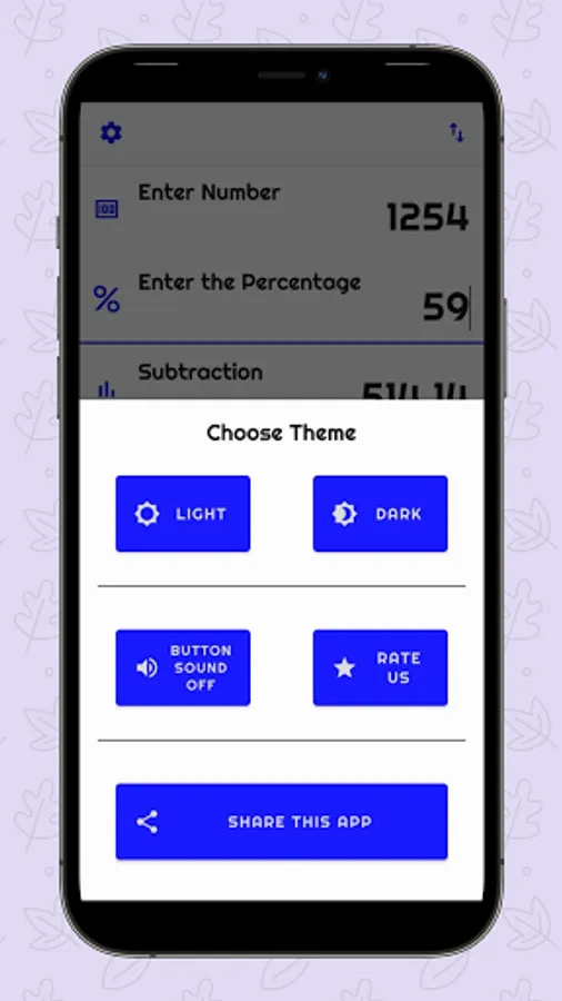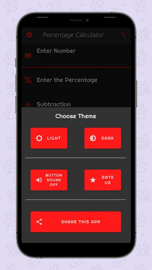 ✔ There are two themes in the Percentage Calculator application as light and dark.