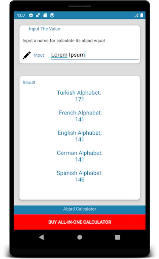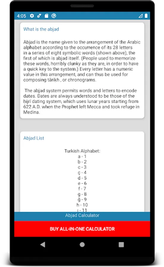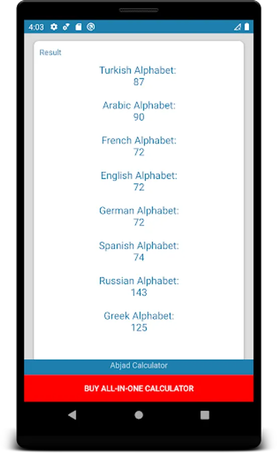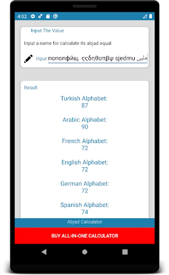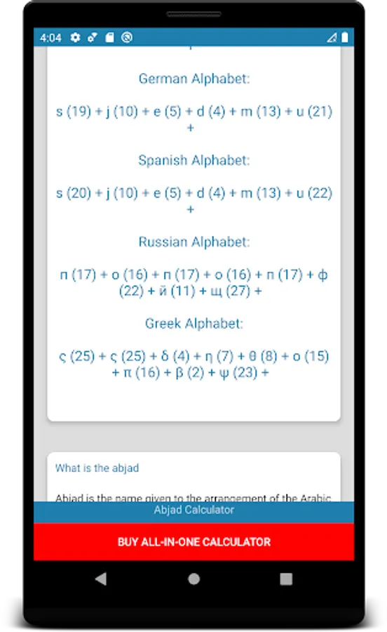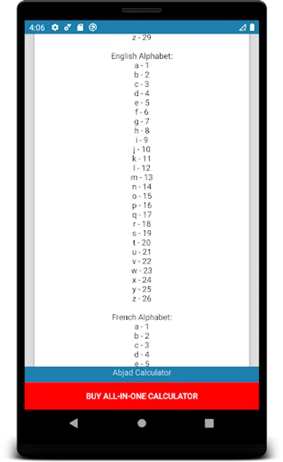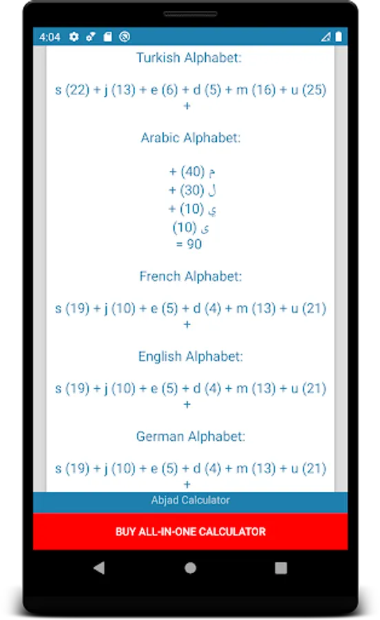 You can calculate words numerological equals with this free app for mystical sciences, tarot cards, zodiac sings, horoscope, astrology, birth chart. There are only 8 alphabets support at this point. These are English alphabet, French alphabet, Turkish alphabet, Arabic alphabet, Russian alphabet, German alphabet, Spanish alphabet and Greek alphabet. New alphabets will be added soon. This app can be used for Tarot, Astrology or mystical science. Report any bugs or any mistranslation via e-mail. Thank you for downloading.