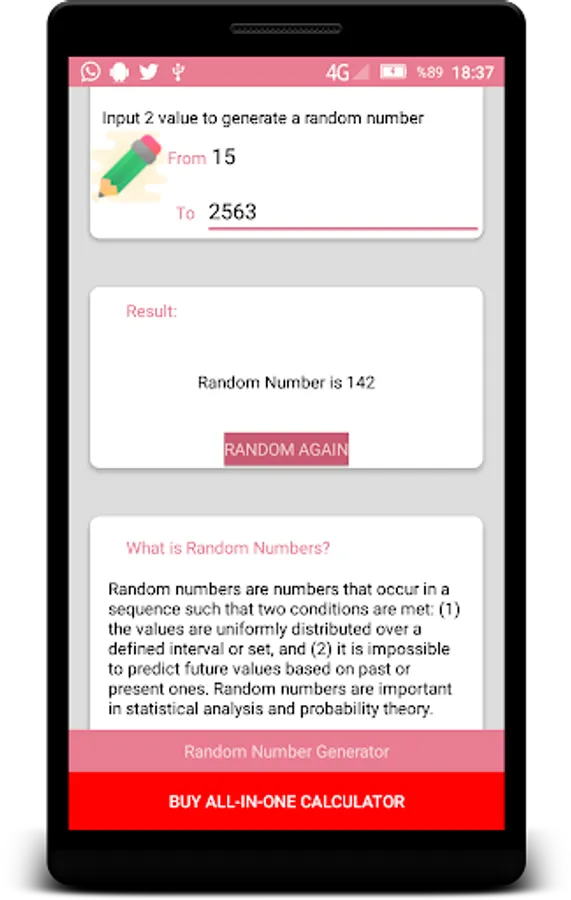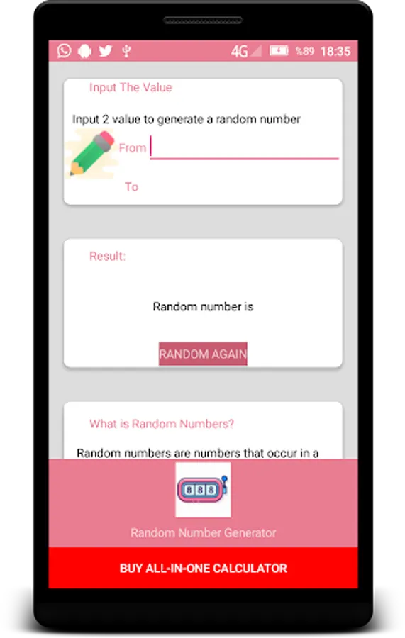 With this random number generator free app you can easily generate random numbers.