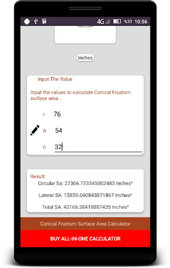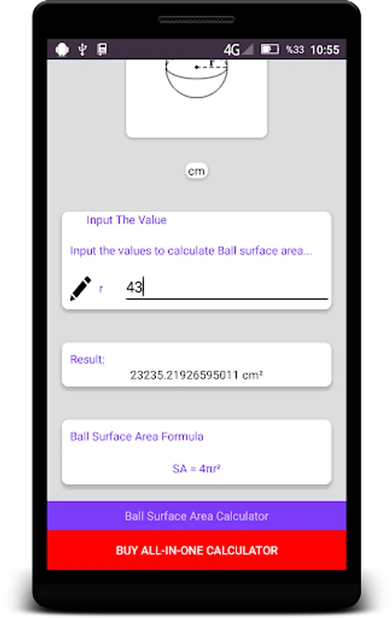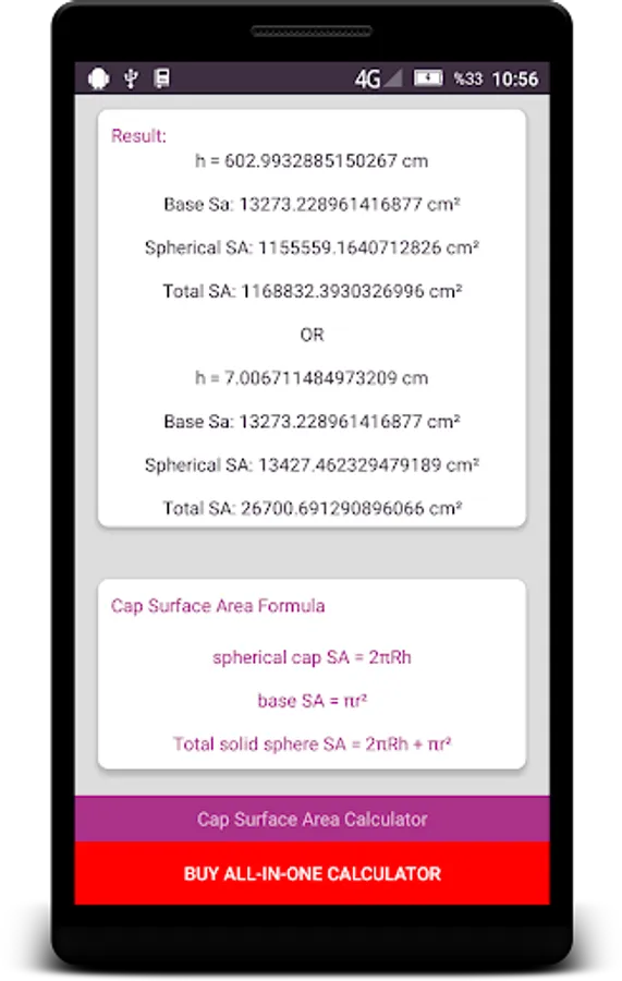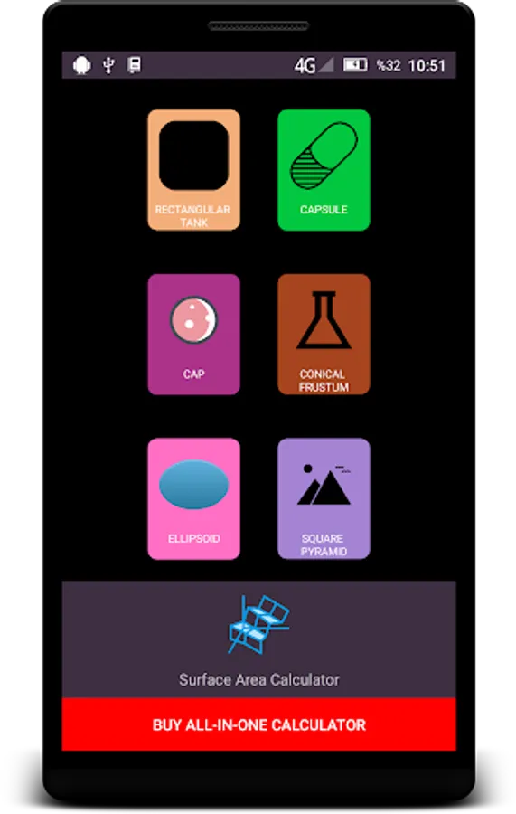You can use Sphere surface area Calculator, Cone surface area Calculator, Cube surface area Calculator, Cylinder surface areaCalculator, Rectangular Tank surface area Calculator, Capsule surface area Calculator, Ellipsoid surface area Calculator, Conical Frustum surface area Calculator, Square Pyramid surface area Calculator, Tube Pyramid surface area Calculator for your scientific calculations. These calculators are accurate and app works solid and has no bug.