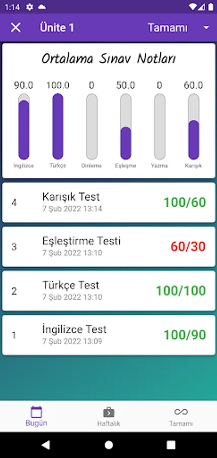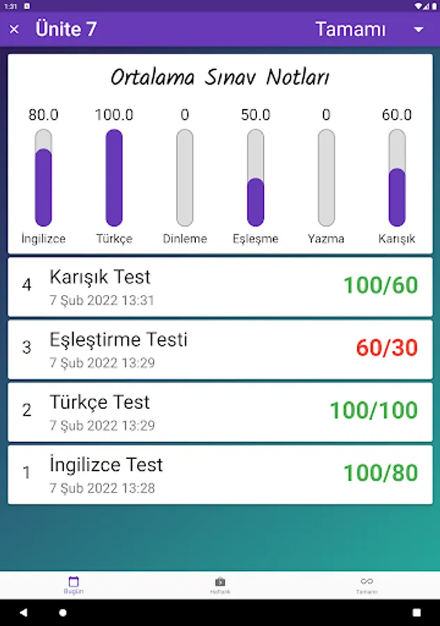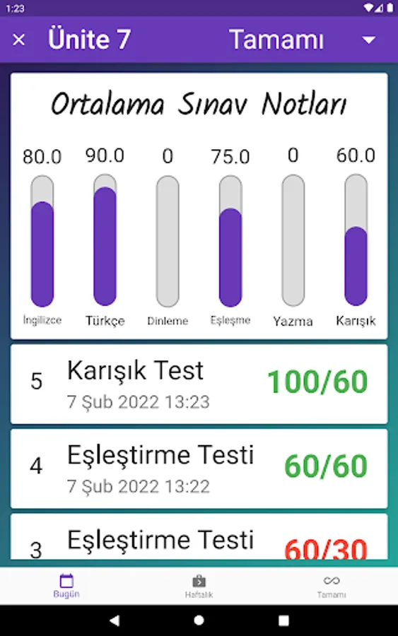 Parents and students can see the exam results daily, weekly and completely separately and by filtering them according to the exam type. The program can also be used as a dictionary. Thanks to this application, even if each student is on vacation, they will return to school with the quality of being trained by a teacher and with an improved vocabulary.