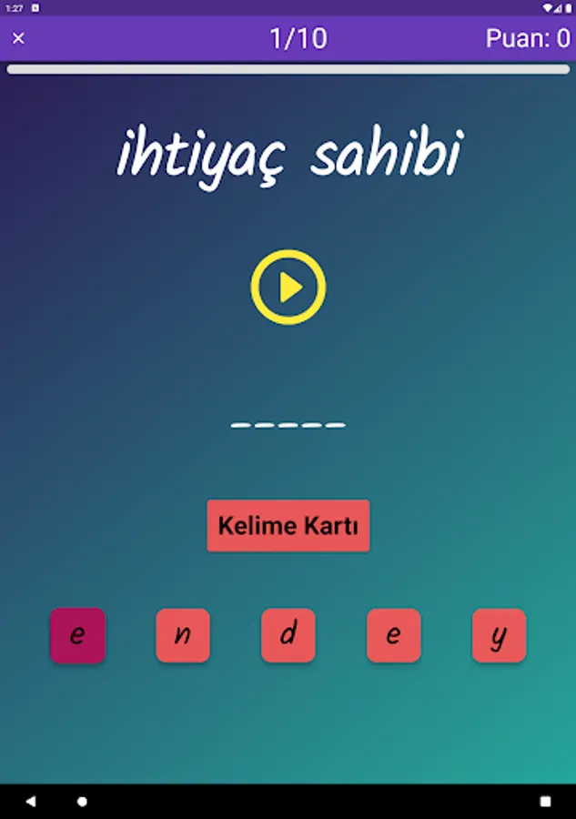 The importance of English education is indisputable today. It is very important to give and reinforce this education in the early stages. That's why this free word memorization app has been developed for students, in keeping with the high school curriculum and making language learning fun too. At the same time, it is aimed to direct the time spent by young people on the screen to useful activities.