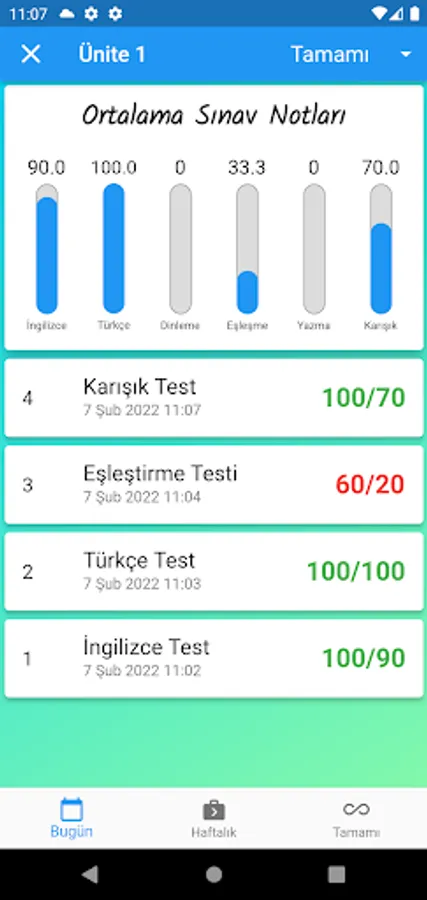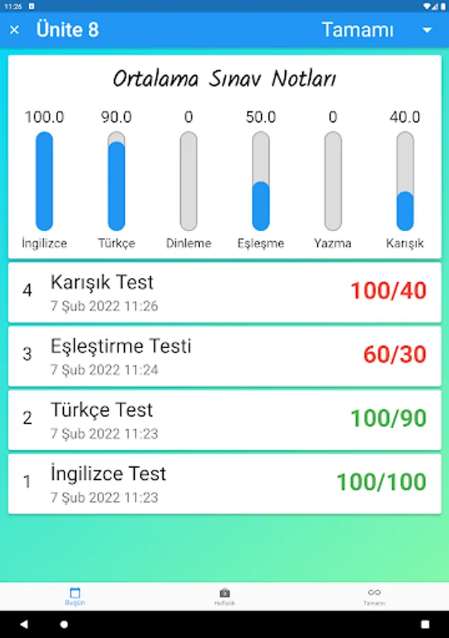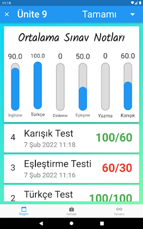 Parents and students can see the exam results daily, weekly and completely separately and by filtering them according to the exam type. The program can also be used as a dictionary. Thanks to this application, even if each student is on vacation, they will return to school with the quality of being trained by a teacher and with an improved vocabulary.
