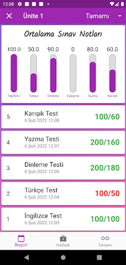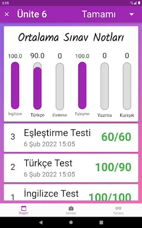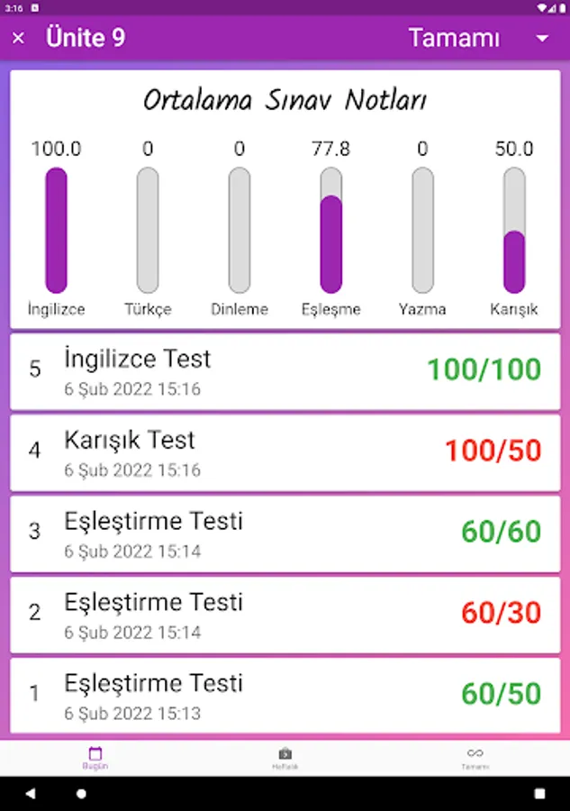 Parents and students can see the exam results daily, weekly and completely separately and by filtering them according to the exam type. The program can also be used as a dictionary. Thanks to this application, even if each student is on vacation, they will return to school with the quality of being trained by a teacher and with an improved vocabulary.