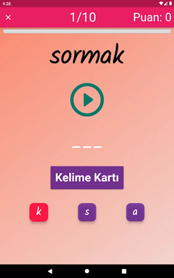 The importance of English education is indisputable today. It is very important to give and reinforce this education in the early stages. That's why this free word memorization app has been developed for students, in keeping with the secondary school curriculum and making language learning fun as well. At the same time, it is aimed to direct the time spent by young people on the screen to useful activities.