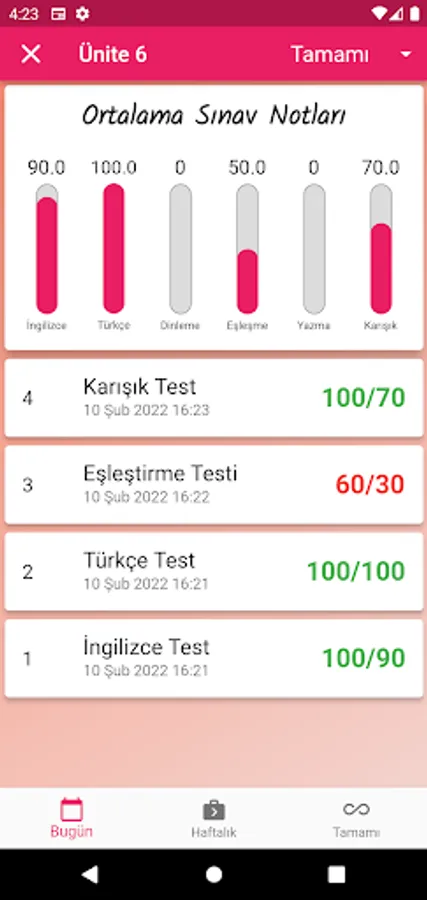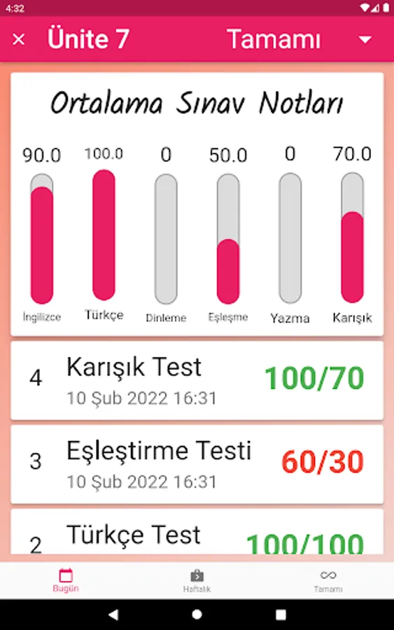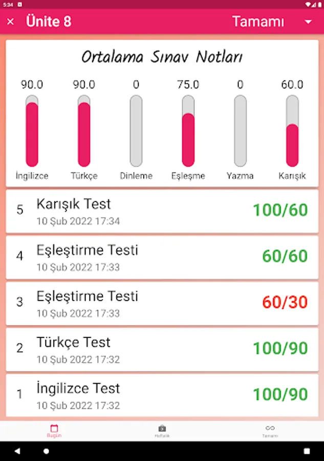 Parents and students can see the exam results daily, weekly and completely separately and by filtering them according to the exam type. The program can also be used as a dictionary. Thanks to this application, even if each student is on vacation, they will return to school with the quality of being trained by a teacher and with an improved vocabulary.
