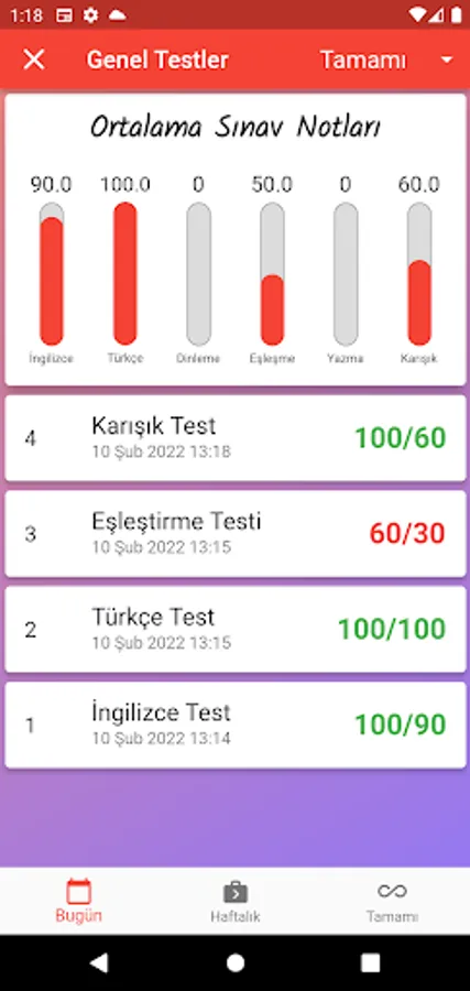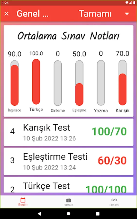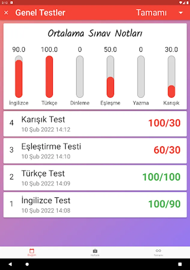 Parents and students can see the exam results daily, weekly and completely separately and by filtering them according to the exam type. The program can also be used as a dictionary. Thanks to this application, even if each student is on vacation, they will return to school with the quality of being trained by a teacher and with an improved vocabulary.