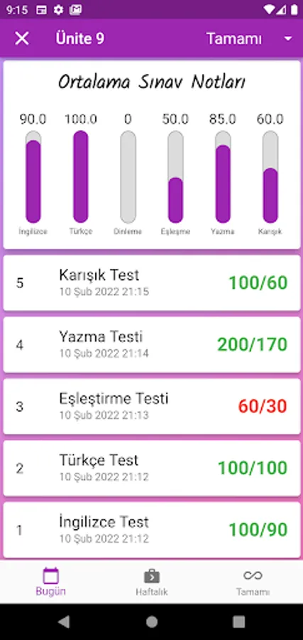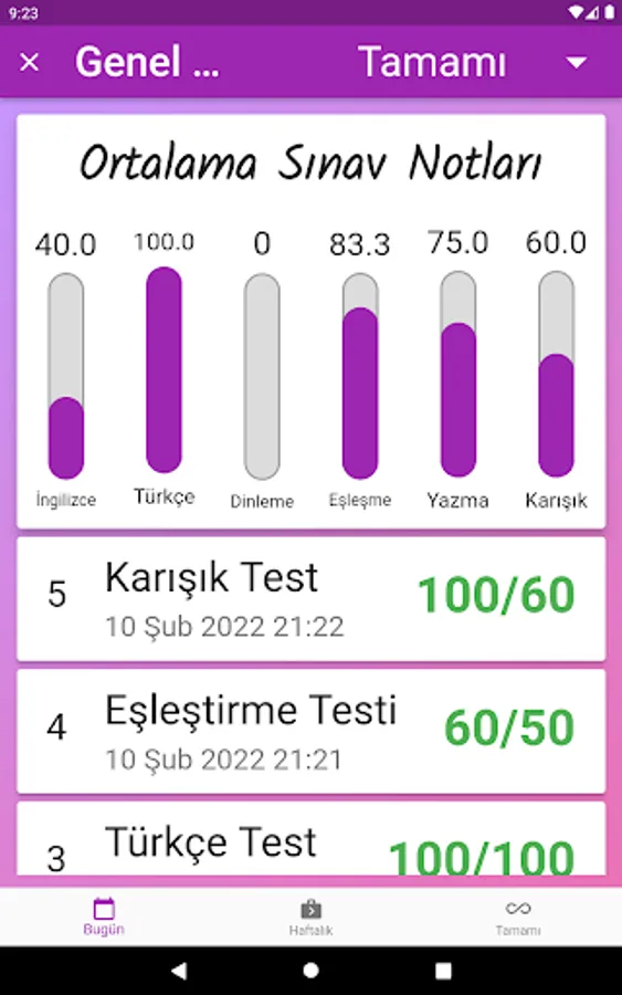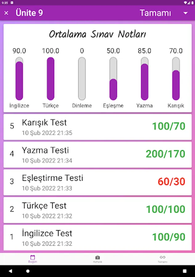 Parents and students can see the exam results daily, weekly and completely separately and by filtering them according to the exam type. The program can also be used as a dictionary. Thanks to this application, even if each student is on vacation, they will return to school with the quality of being trained by a teacher and with an improved vocabulary.